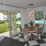 The villa includes an equipped kitchen fitted with coffee and tea makers, a fridge, and an oven. Guests can relax in a private garden or take a dip in a private swimming pool at this Bardolino accommodation.